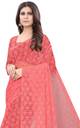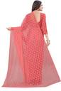 Composed of high-quality net fabric, this saree can provide a lightweight and breathable feel, ensuring prolonged comfort. The fabric also gives a sheer, delicate look, enhancing elegance while making it suitable for events and festivities. Moreover, the airy texture of the material can enable a fluid drape, creating graceful movements with every step.