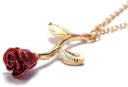 vien Red Rose Shape Long Chain Pendant Necklace for Women Simple Beautiful Jewelry Gold-plated Alloy Pendant