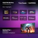 ViewSonic 68.58 cm (27 inch) Full HD IPS Panel with HDR10, 104 sRGB, Eye Care, Wall Mount, Tilt, 2 x HDMI, 1 x Display Port, Wide View Angle Gaming Monitor (VX2779-HD-PRO) (AMD Free Sync, Response Time: 1 ms, 180 Hz Refresh Rate)