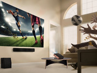 Using voice control via Google Assistant and/or Alexa, you can turn on or turn off, switch sources, control the volume, and do much more on this projector.
