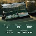 ViewSonic VG Series 39.62 cm (16 inch) Full HD IPS Panel Portable Monitor (VG1655) (Response Time: 6.5 ms, 60 Hz Refresh Rate)