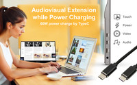 Type C mobile device’s multimedia onto a bigger screen and charge (up to 60 W) over one cable while powering from an external power bank/outlet over the other USB Type C cable. Project media from your Type-C mobile device to a larger screen and simultaneously charge it up to 60W using a single cable. Power can be supplied from an external power bank or outlet via a second USB Type-C cable.