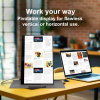 In addition to standard horizontal content, a pivot screen can be configured for tasks such as table reviewing, programming, photo editing, or gaming.
