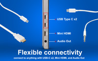 Enjoy multimedia from your USB-C mobile device on a larger screen. Charge your device (up to 60W) using one USB-C cable while simultaneously powering it from an external source via another USB-C cable.