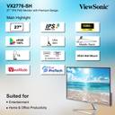 ViewSonic VX2776-SH is designed to take your viewing experience to another level. With a SuperClear IPS panel and a sleek frameless design, this monitor provides a near-seamless viewing experience ideal for multi-monitor setups. Clarity From Any Angle, With a 75Hz refresh rate, this monitor delivers great visual fluidity and flawless graphics, no matter how quickly the in-game action unfolds.