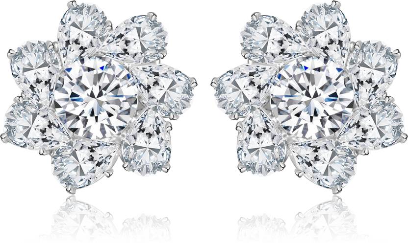 Beautiful Earrings Elite Fancy Rhodium Plated for Solitaire Stud Women and Girls