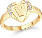 This Vighnaharta cz alloy Gold plated Valentine collection Initial Letter in heart ring is made of alloy (brass). This ring is studded with cubic Zirconia (CZ) Stone. The model of the ring is made of CAD/CAM design which gives look of real Gold and Diamonds jewellery.