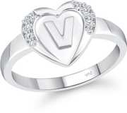 cz alloy Rhodium plated Valentine collection Initial '' V '' Letter in heart ring alphabet collection for women and Girls
