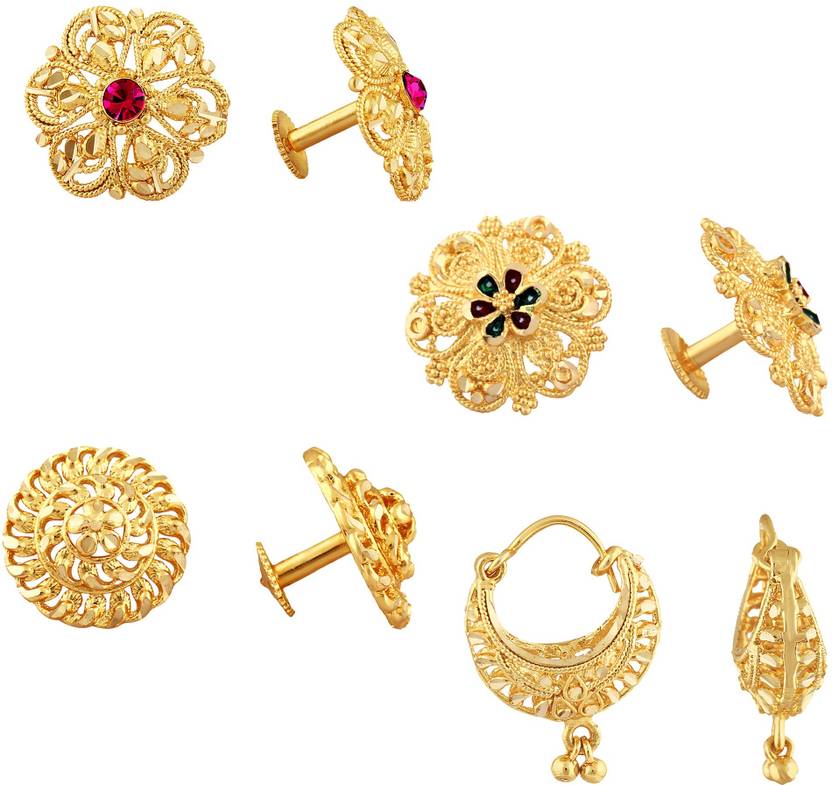 VIVASTRI Vivastri"s Golden Alloy Stud Earrings Combo Set(Sales Package-4 Pair Earrings ) Cubic Zirconia Alloy Stud Earring