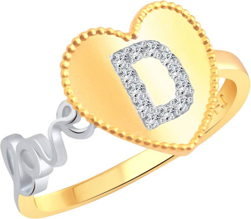 This Vighnaharta Valentine Love "D" Letter in Heart Gold and Rhodium Plated Ring is made of alloy. This ring is studded with cubic Zirconia (CZ) stone. The model of the ring is made of CAD/CAM design which gives look of real white gold and diamond jewellery. This ring has high end fashion design which has elegance and style that will add radiance to natural beauty of women.