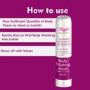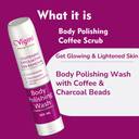 VIGINI Lightening Brightening Body Polishing Wash believes in purity and transparency, we bring to you the heroes of our Body Wash. Let us know how the Natural actives and ingredients in the oil act to give you desired results. 1. Glutathione helps lightens complexion, creates even skin tone by reducing dark spots & patches. 2. Alpha Arbutin and Mulberry work by reducing hyperpigmentation ,melanin darkening and thus lightening the skin tone giving fairness. Be it age spots, acne scars or post-blemish redness, Alpha Arbutin minimizes it all. 3. Niacinamide would help build keratin and makes skin firm and healthier. It also protects Skin against Sun damage; it minimises fine lines and reduce signs of premature ageing. 4. Jojoba Oil hydrates moisturizes nourishes the skin and provides anti-fungal, anti-bacterial benefits. 5. Argan Oil nourishes & helps to improve the elasticity of the skin. 6. Coffee Bean Grains exfoliate & detoxify skin improve blood circulation, Collagen Production, and helps in removal of Imperfections. Removes Deep Dead cells, De-Tans and provides glow with radiance 7. Vitamin C neutralizes oxidative damage caused by the sun and pollution. It also promotes collagen production brightening the skin. 8. Glycerine deeply hydrates the skin and leaves it soft and supple. It also refreshes the skin’s surface 9. Activated Charcoal Beads work as natural exfoliator to remove dead skin cells, with antimicrobial properties absorbs toxins, and draws out impurities and dirt from your skin to make it fresher, brighter and radiant. A more luminous skin tone will make you glow beautifully. It’s the epitome of health and glamour 10. Allantoin moisturizes the skin to prevent dryness irritation ,exfoliates and soothens skin. 11. Aloevera Ext soothes sunburns, moisturizes the skin, slows down signs of ageing ,cleanses, fights acne and fades blemishes. 12. Xanthan Gum hydrates & moisturizes skin. For best Results use Start with Skin Body Lightening Brightening Body Polishing Wash with and Complete the Regimen with Vigini Lightening Brightening Body Polishing Cream with SPF 30.Together use as a Body Skin Fairness Polishing Kit. It is safe to use after or with Skin Body Lightening Whitening Soap Wash Oil Lotion Serum. VIGINI believes in purity and transparency, we bring you the heroes of skin body Lightening Brightening Whitening Moisturizing Scrub wash. One of the major benefits of using a skin lightening body wash is that it works to produce the same lighter skin tone all over your body with minimal effort without use of a scrub or bleach. Vigini Lightening Brightening Polishing Wash helps do away with pigmentation issues, marks, spots and gets you a clearer complexion to be precise. Easy to carry and easy to use pack is very handy and can be used anywhere.