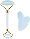Jade Roller For Face Massager and Gua Sha Set - Natural Opal Clear Blue- Massage Beauty Tools for Face and Eyes Puffiness Relief, Reducing Skin Wrinkle Anti-aging Facial Roller