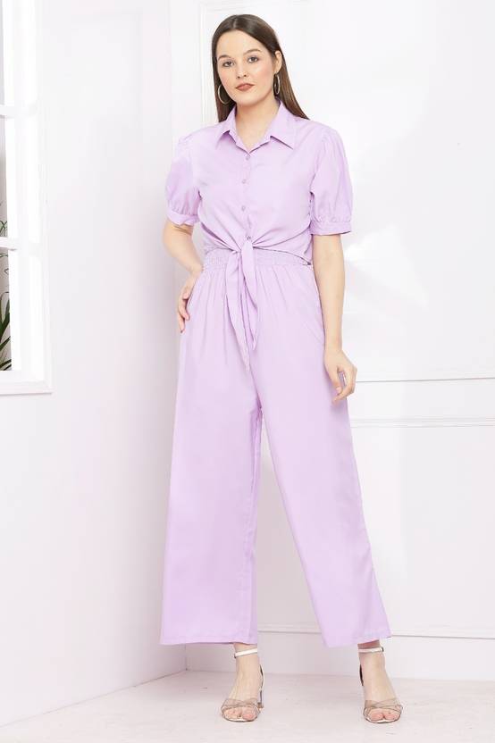 This vibrant mustard jumpsuit combines elegance and comfort for a chic, effortless look. The top features a collared shirt design with short, slightly puffed sleeves, giving it a smart, tailored appearance. The button-down front adds a classic touch, while the waist is defined by a fabric tie, accentuating the figure. The bottom half of the jumpsuit flows into wide-legged pants, offering ease of movement and a relaxed silhouette. The smocked detailing at the waist enhances the fit, making it both stylish and comfortable. Perfect for casual outings or semi-formal occasions, this jumpsuit blends sophistication with a bold color that stands out.