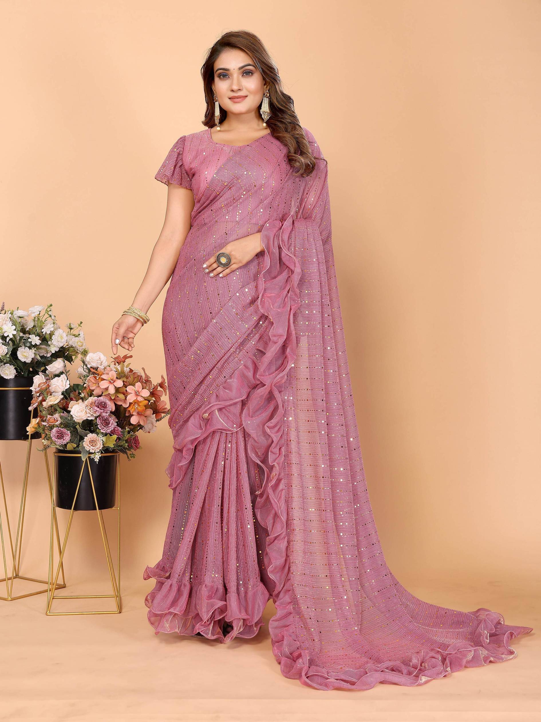 A saree is a timeless and versatile garment, typically measuring Blouses in the 38 to 42 inch size range are designed to fit medium to large bust sizes , Some blouses also include padding for added shape and support, while others are unpadded for a more natural fit. The choice of fabric plays a crucial role in the overall look and comfort of the saree. Popular fabrics AS SUPERNET which are known for their luxurious texture and are ideal for weddings and special occasions. Also NET provides a sleek, crinkled texture, adding a contemporary touch , ideal for summer wear.