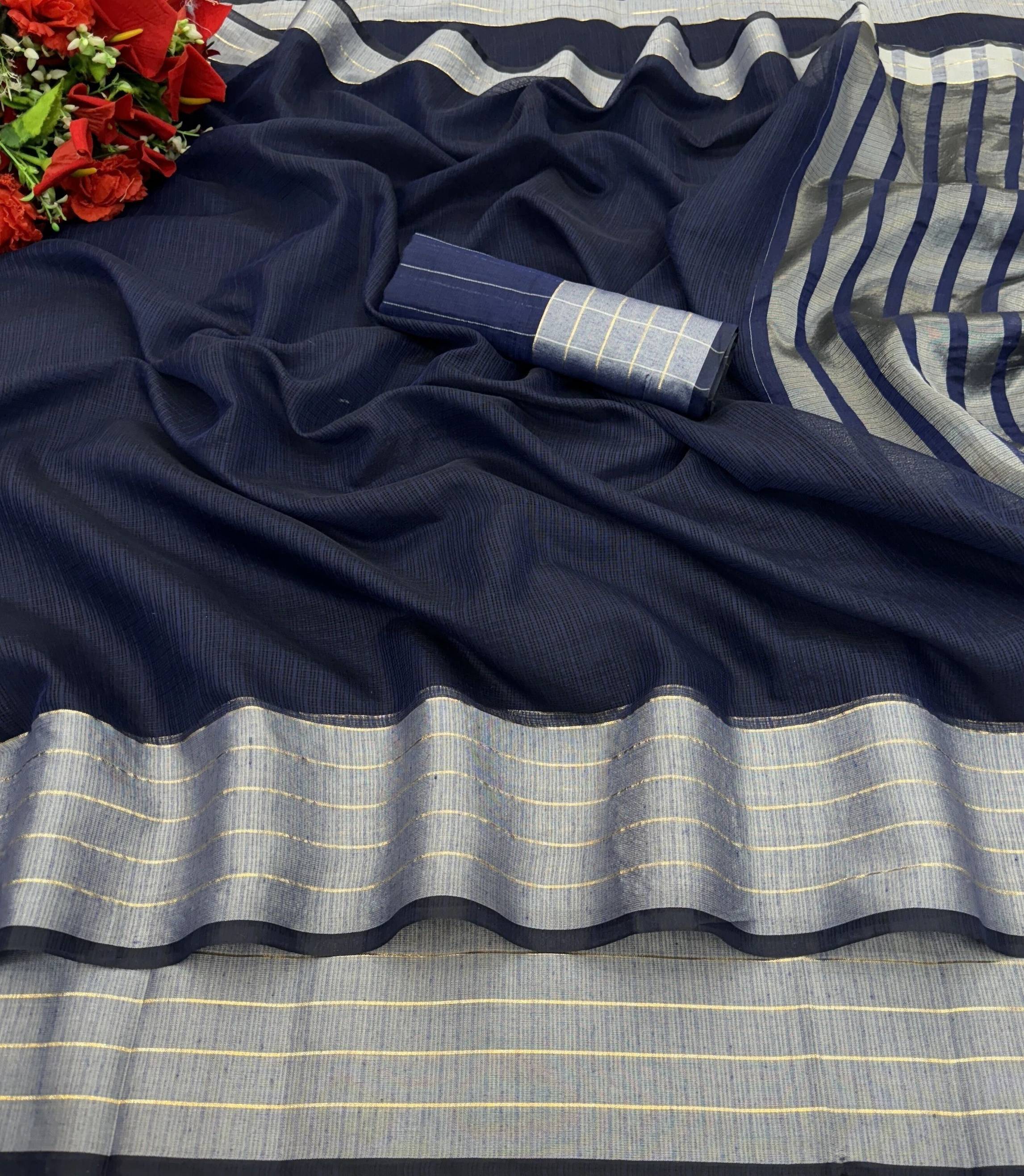 Linen sarees are known for their light and soft fabric. It's the breezy fabric that makes it a favorite during hot summers. It's perfect for the summer season as it is sweat-absorbent and also skin-friendly. It's one of the most superior types of fabric in comparison to other types of fabric.