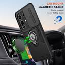 Courtesy of the car mount magnetic stand in this back cover, the phone attaches to compatible mounts, helping keep it steady during commutes. Showing a slide camera cover built into the structure, the design adds a movable shield that helps protect the lens when not in use.