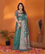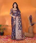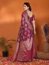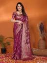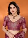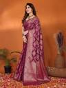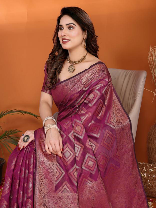 VILLAGIUS Woven Ikkat Organza Saree (Magenta)