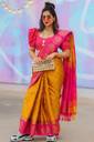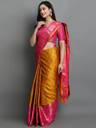 VILLAGIUS Woven Kanjivaram Cotton Silk, Art Silk Saree (Gold, Pink)