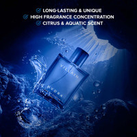 The perfume boasts intense aquatic notes that create an unparalleled sense of freshness. These notes and hints of white musk create a powerful and refreshing essence. This feature ensures that the fragrance keeps you ready for the hustle, providing an energetic and revitalising experience throughout the day.