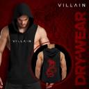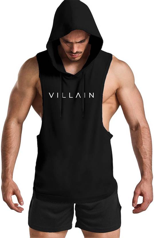 VILLAINLIFEĀ Men Sleeveless Solid, Printed Hooded Sweatshirt