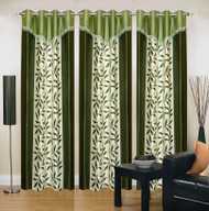 Ville Style 214 cm (7 ft) Door Polyester Room Darkening Curtain (Pack Of 3) (Green, Floral)