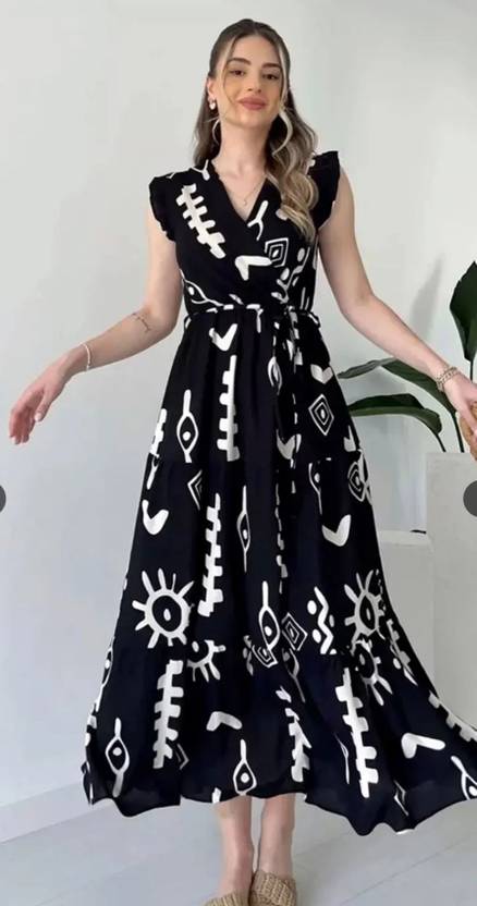 Viscose Rayon Stitched Flared/A-line Gown (Black)
