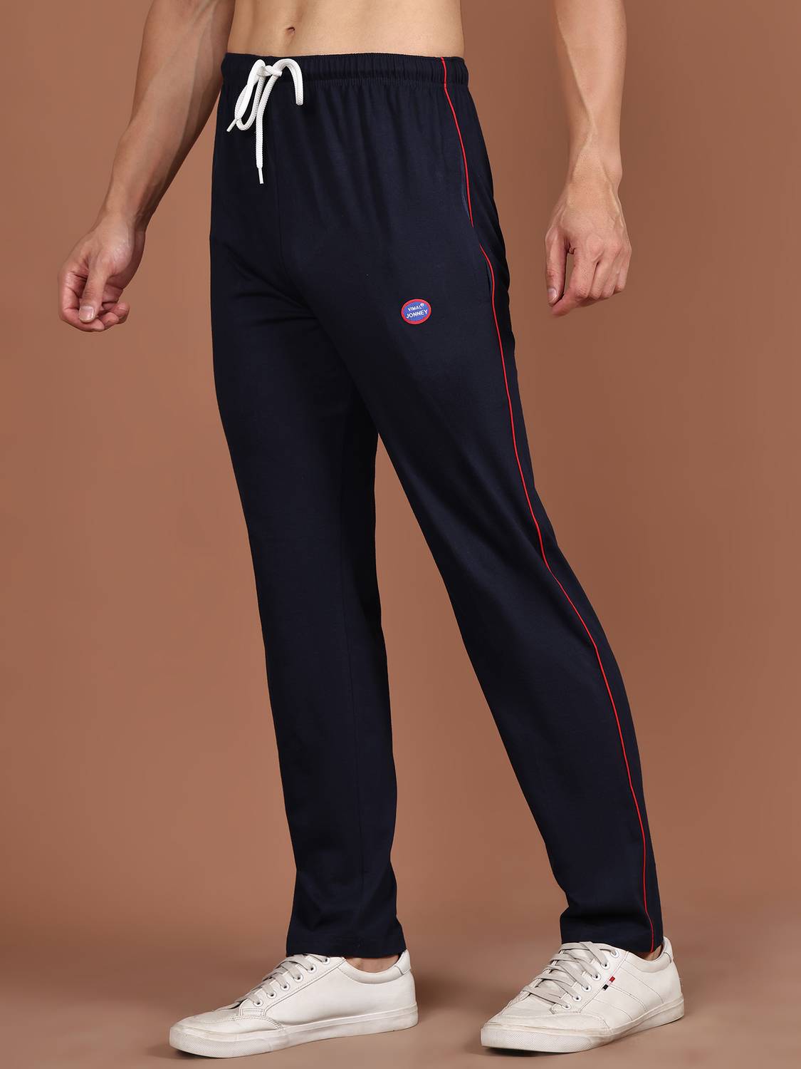 Improve your performance while exercising wearing these navy blue track pants by VIMAL JONNEY. Made of cotton::these track pants assure exceptional breathability and flexibility helping you in performing well. These track pants are also ideal for daily / casual wear or for Yoga.