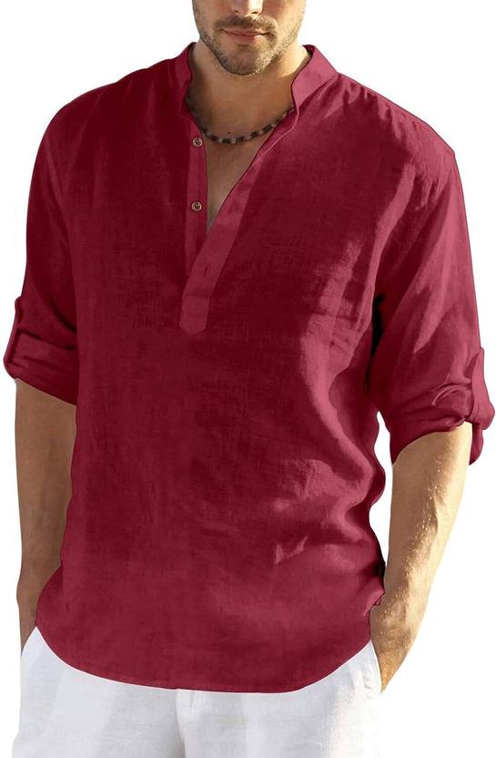 Amrit topwear Men Solid Straight Kurta (Maroon)