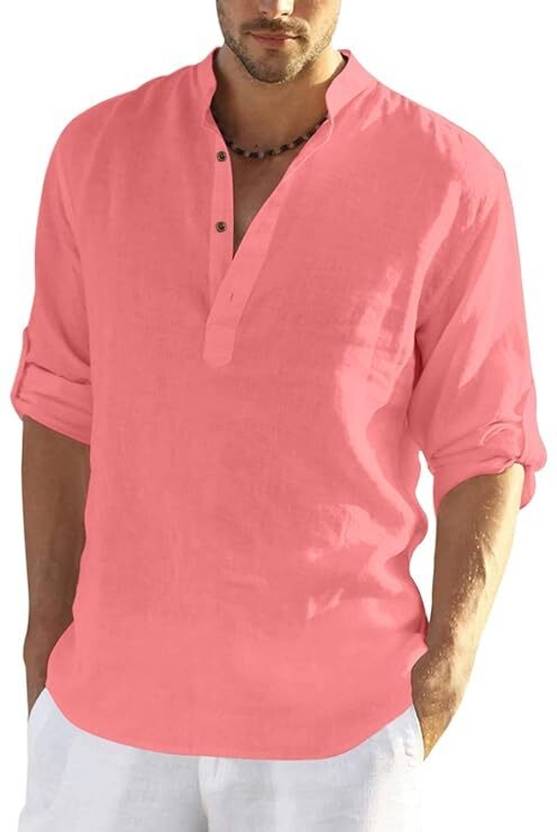TrendiVastra Men Solid Cotton Blend Straight Kurta (Pink)