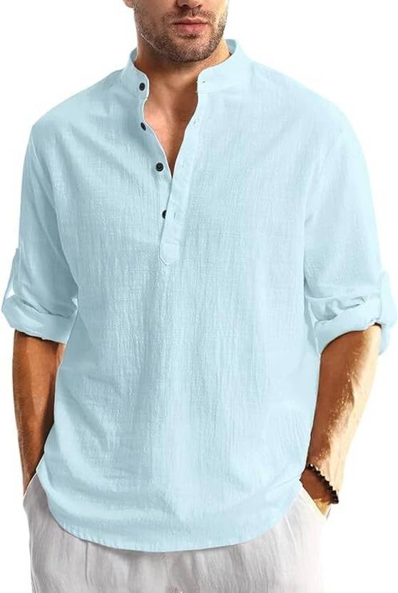 HouseOfCommon Men Solid Straight Kurta (Light Blue)