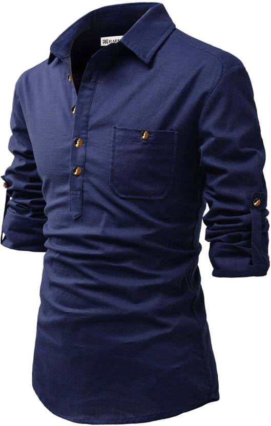 Elevate your casual style with the RAREMARK Men Pure Cotton Slim Fit Short Kurta. Designed for ultimate comfort and sophistication, this super-soft beige kurta features a spread collar and roll-up full sleeves, making it a versatile wardrobe essential. Whether you're heading for a casual outing, brunch, or a light festive gathering, this kurta ensures you look effortlessly stylish. Key Features: Gender: Men Pattern: Solid Design Type: Plain, minimalist elegance. Closure: Button-down front for easy wear. Sleeve: Full sleeve with a roll-up option for added versatility. Waist Rise: Mid-rise for a tailored fit. Collar: Spread collar for a modern, sharp look. Hemline: Curved, enhancing the structured yet relaxed fit. Fabric: 100% pure cotton for superior softness and breathability. Product Length: Short, designed for a slim-fit look.