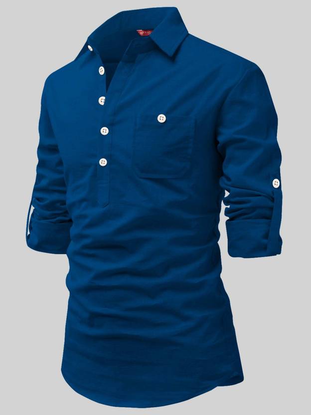 Elevate your style with the Yugnik Men's Sky Blue Spread Collor Cotton Short Kurta. Suitable for any occasion, festival, or party celebration, this versatile kurta is a wardrobe essential. Product Details: 👕 Gender: Men 🔹 Pattern: Solid 🌟 Design Type: Plain 🎨 Available Colors: Beige, Black, Dark Teal, Golden, Green, Light Green, Grey, Maroon, Navy Blue, Orange, Peach, Pista, Red, Royal Blue, Sky Blue, Turquoise, White, Yellow 🔒 Closure: Button 👔 Sleeve: Full Sleeve 🔄 Sleeve Style: Roll-Up Sleeve ↔️ Waist Rise: Mid-Rise 👘 Collar: Spread Collar ➰ Hemline: Curved 🌿 Fabric: Cotton 📏 Product Length: Short 📦 Pack of: 1 🧼 Material & Care: Cotton Fabric, Hand and Machine Wash 🌟 Top Feature: Roll-up sleeve design for adjustable styling and convenience, Chinese collar for a contemporary touch. 👔 How to Style: Formal Elegance: Pair this kurta with tailored trousers and polished dress shoes for a refined and sophisticated look suitable for formal gatherings or office meetings. Casual Cool: Opt for a laid-back vibe by teaming this kurta with denim jeans and sneakers, perfect for casual outings or weekend hangouts with friends. Festive Finesse: Elevate your festive ensemble by pairing this kurta with traditional ethnic bottoms like churidar or dhoti pants. Add a statement stole or scarf for extra flair. Layered Look: Create a fusion of traditional and contemporary style by layering this kurta with a waistcoat or Nehru jacket. This combination exudes elegance and sophistication. Accessorize with Panache: Enhance your look with ethnic accessories such as beaded necklaces, bracelets, or a stylish watch to make a fashion statement. Versatile Pairing: This kurta pairs effortlessly with various bottom wear options including jeans, trousers, churidars, or dhotis, offering versatility for different occasions. All-Season Essential: Crafted from lightweight and breathable cotton fabric, this kurta ensures comfort throughout the year, making it a wardrobe staple for every season.