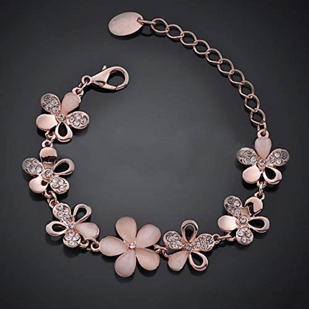 Fashion Flower Rose Gold Plated Crystal Bracelet for Girls and Women. A Bracelet That Is Romantic, Colorful And Glamorous. This Imitation Bracelet For Women Comes In Unique Design And Patterns, Studded With Crystals And Rose Gold Plated.