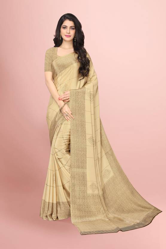 Vimla Checkered Bollywood Art Silk Saree (Beige)