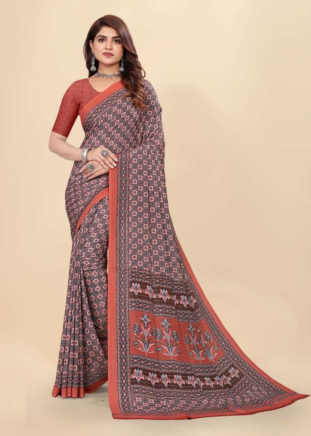 For Daywear, Silk collection, Silk, Printed Border, Occasional Sari/Party Sari, Floral prints