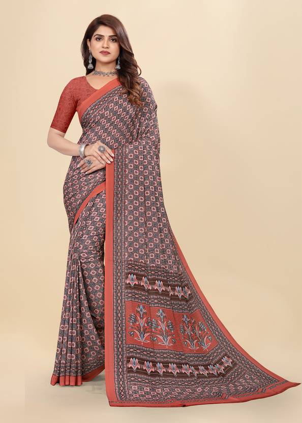 Casual Festive Wear Crepe Printed Saree with Un-stitched Blouse Piece, Saree length is 5.5 Meters, Blouse Piece Length is 0.8 Meters