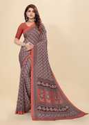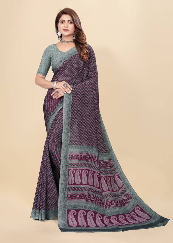 Vimla Printed Mysore Crepe Saree  (Purple, Grey)