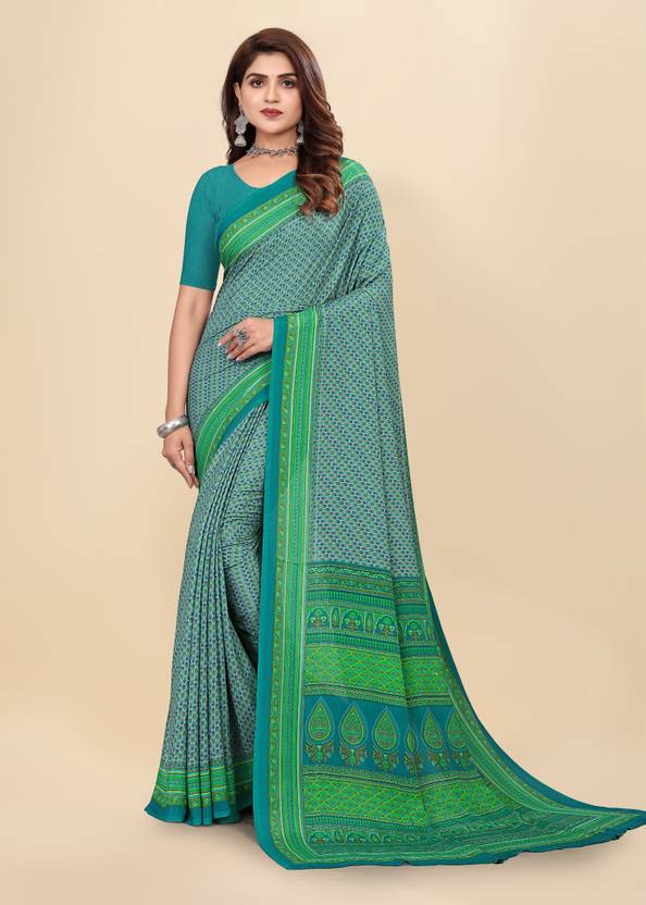 Vimla Printed Mysore Crepe Saree  (Light Blue)