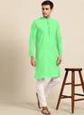 The kurta features a classic collar and a full-button placket, giving it a sophisticated look. The simple yet elegant design is accentuated by the intricate embroidery on the front and sleeves, adding a touch of traditional charm. The kurta is available in a range of colours, from classic white to vibrant shades of blue and green, allowing you to choose the perfect hue to match your personal style.