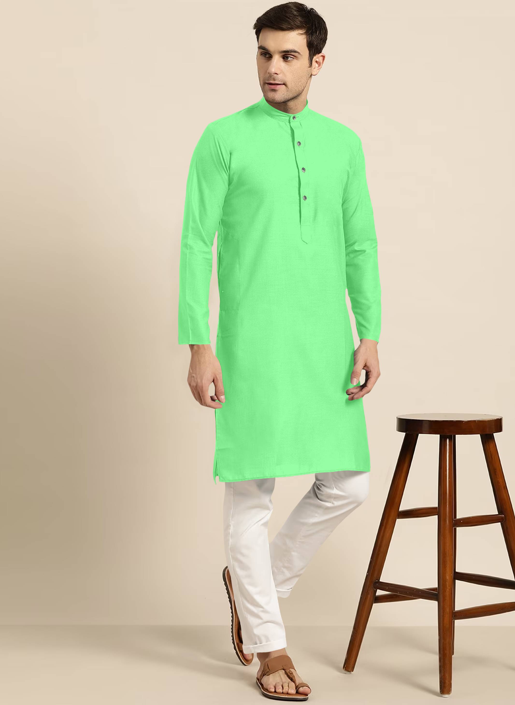 Introducing the perfect ensemble for the modern Indian man - the Cotton Men's Kurta and Pyjama. Crafted from premium quality cotton, this traditional attire is both comfortable and stylish, making it the perfect choice for any occasion.