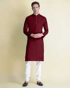 The kurta features a classic collar and a full-button placket, giving it a sophisticated