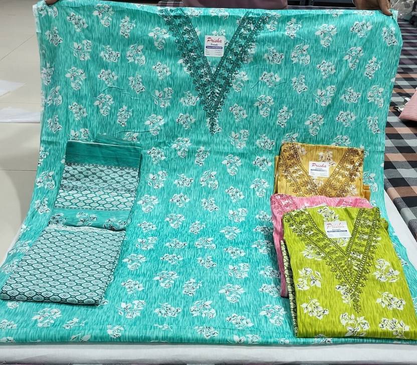 Unstitched Cotton Blend Salwar and Dupatta Material Printed