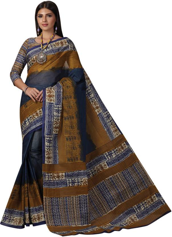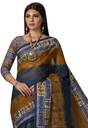 Vinay's Printed Daily Wear Pure Cotton Saree (Dark Blue)