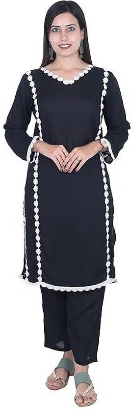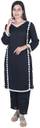 Kurties Color: BlackMaterial: High-quality fabric ensuring comfort and durabilityDesign: Stylish kurta with intricate detailing paired with complementing straight-cut pantsOccasion: Perfect for festive occasions, casual outings, and special eventsCare Instructions: Gentle hand wash or dry clean for long-lasting useFeatures:Flattering fit that accentuates your silhouetteRich black hue that adds a touch of sophisticationQuality craftsmanship ensuring a perfect finishComfortable and breathable fabric for all-day wearRevamp your traditional look with the Jai Kurties Women's Kurta Pant Set in black, designed to make you look and feel your best on any occasion.
