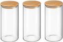 • 3 Pcs Borosilicate Glass Jars with Wooden Air Tight Lids Food Storage Container