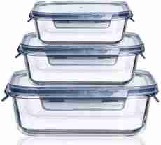 tyche enterprise Glass Fridge Container - 1000 ml, 750 ml, 500 ml Pack of 3, Clear