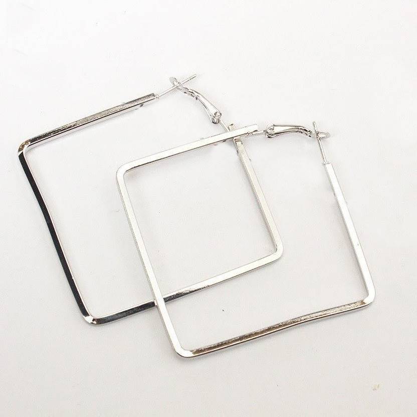 Vings-feel it Silver Square Shape Fancy Metallic Hoops Earrings for Women & Girls - Big Loop Stylish Design Daily Wear Casual Ear Rings Alloy Hoop Earring Alloy Hoop Earring