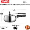 VINOD 18/8 Stainless Steel Sandwich Bottom Handi Shape Inner Lid Europa 3 L Inner Lid Induction Bottom Pressure Cooker (Stainless Steel)