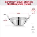 Claro Heavy Gauge Stainless Steel Plain Kadhai, 2.5 mm