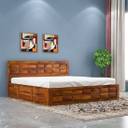 Vinod Furniture Solid Sheesham Wood Queen Size Bed With Storage And Without Mattress For Bedroom Solid Wood Queen Box Bed (Finish Color - Honey Finish, Delivery Condition - DIY(Do-It-Yourself))